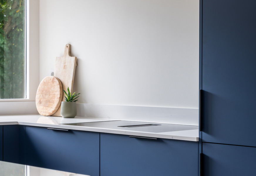 Let wel: bij donkere kleuren kunnen vingerafdrukken zichtbaar zijn. Maar in ruil daarvoor krijg je een naadloos front dat rust brengt in je interieur. Ideaal in Japandi of Scandinavische keukens, waar eenvoud centraal staat.