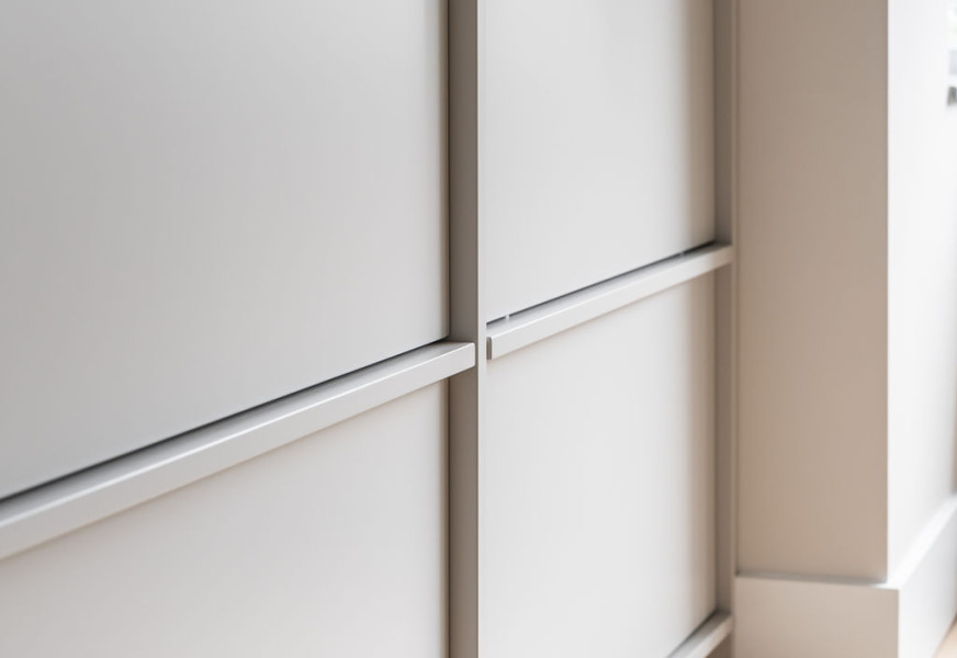 “Een greeplijst is eigenlijk een subtiele inkeping boven of onder het kastfront,” legt Gerrit uit. “Je steekt je hand erachter en trekt zo het deurtje of de lade open. Het ziet er strak uit, want je ziet bijna niets aan de buitenkant – maar het werkt heel prettig in het dagelijks gebruik.”