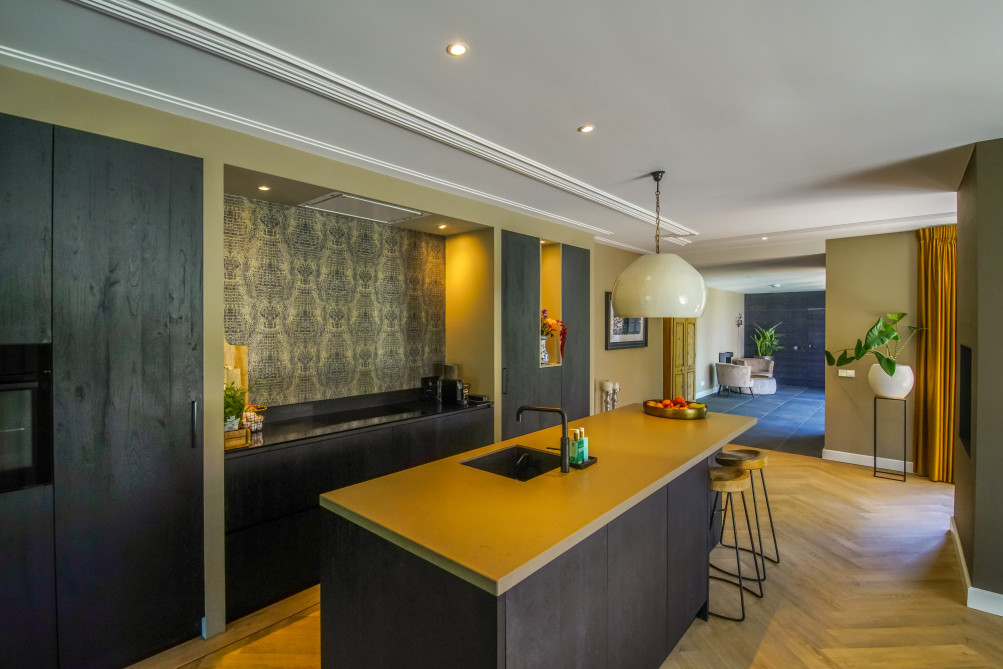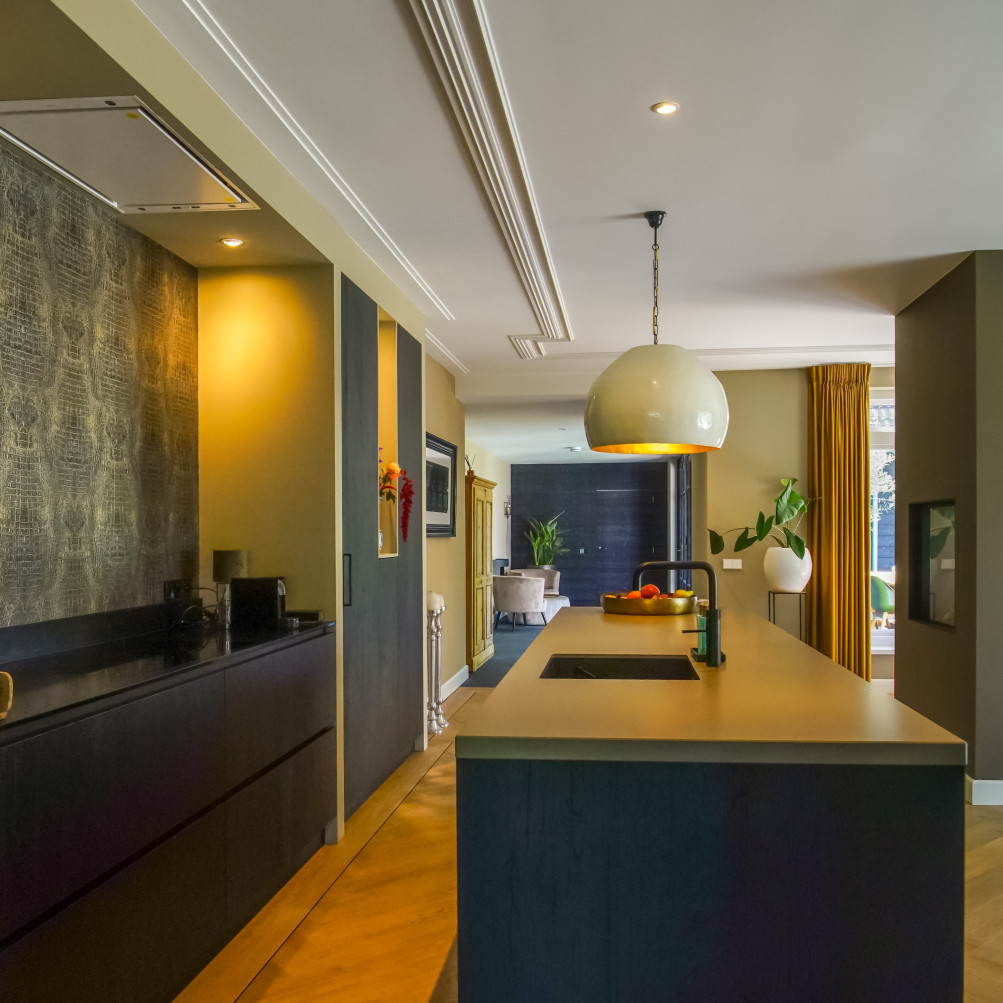 Het eindresultaat is een prachtige combinatie van strak design en chique uitstraling, perfect geïntegreerd in de jaren 30 villa. De keuken fungeert als het hart van het huis, een plek waar het gezin samenkomt en geniet van zowel het moderne comfort als de serene omgeving.